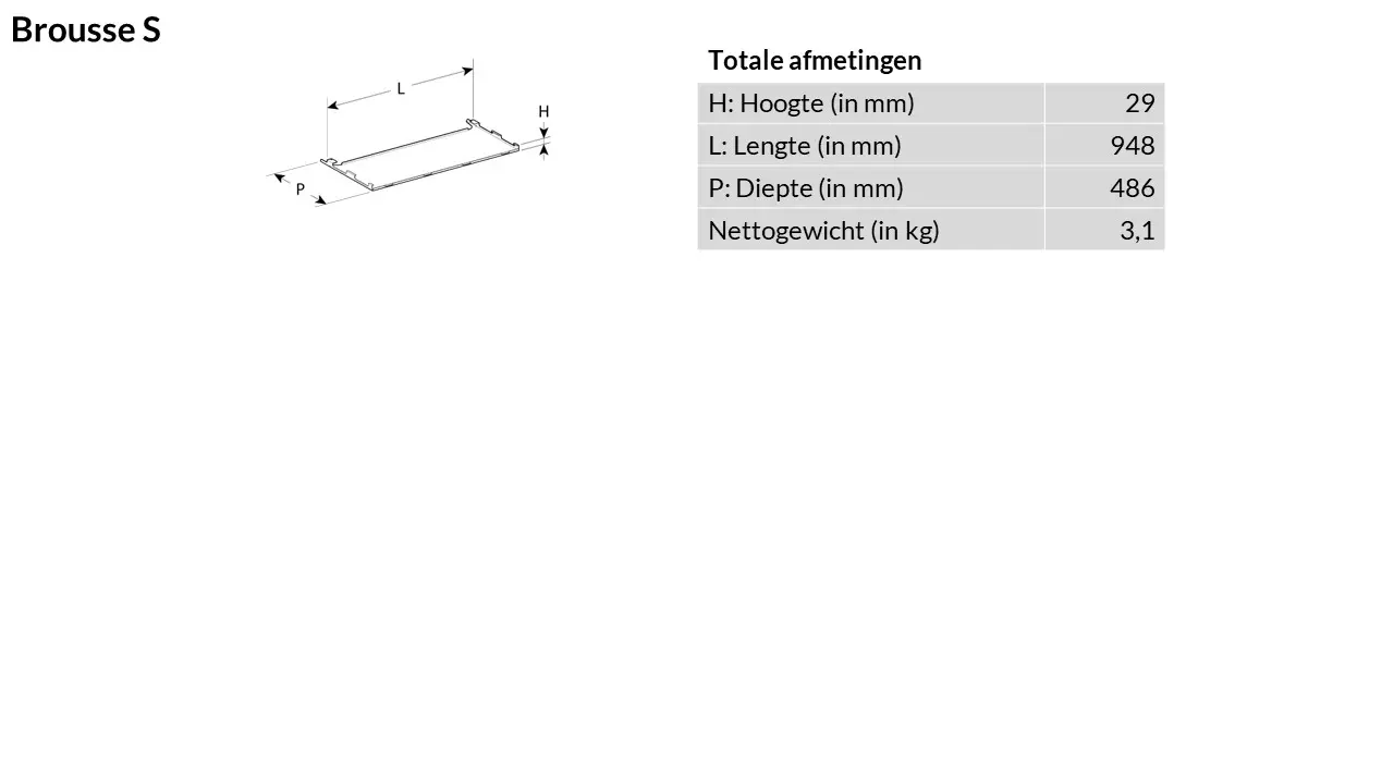 De BROUSSE bodemplaat is geschikt voor gebruik met het BROUSSE basismodel wanneer de warmtepomp of airconditioner op een hoge muur is gemonteerd om de installatie van onderaf te verbergen