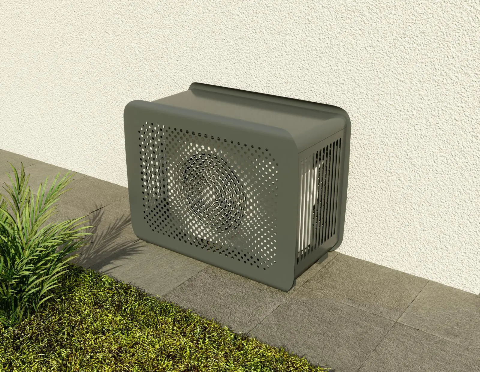 Le cache Outsteel BUBBLES complet est conçu pour dissimuler de manière esthétique l’installation de PAC ou de climatisation située à l’extérieur du logement et la protéger des chocs et intempéries.