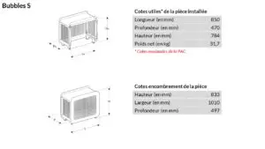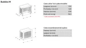 BUBBLES modèle complet s’installe au sol, excentré d’un mur et permet d’habiller complètement la pompe à chaleur ou la climatisation et donner ainsi une esthétique parfaite à 360°.