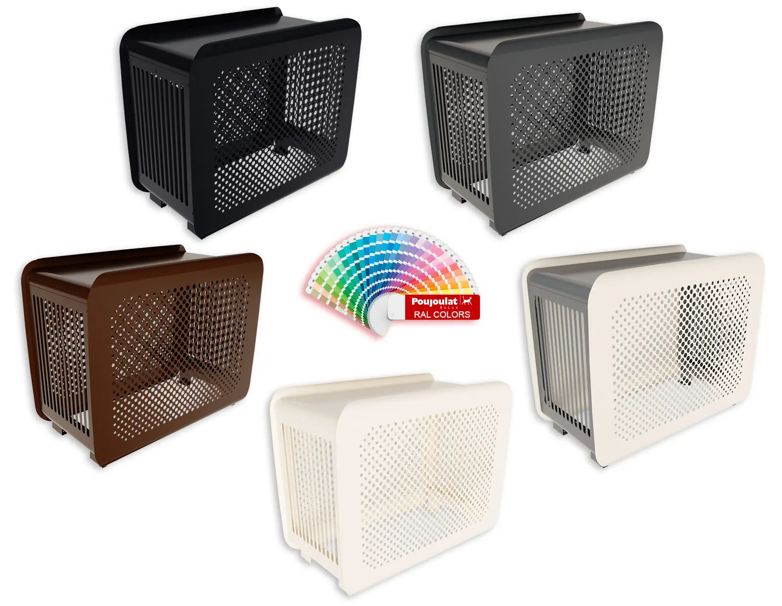 Disponible en 4 couleurs monochrome et 1 modèle bicolore. Il est aussi personnalisable sur commande (avec une plus-value de 25 %) dans la nuance RAL de son choix pour une intégration parfaite de la pompe à chaleur ou de la climatisation dans son espace environnant (version unicolore uniquement).