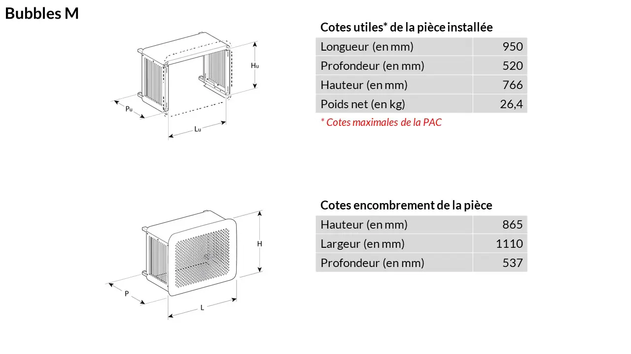 Le cache pompe à chaleur et climatisation BUBBLES est doté d’astucieuses faces déclipsables pour permettre un accès simple et rapide à la PAC ou à la climatisation.