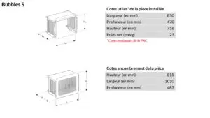 - Des pieds (vendus par paire) sont à prévoir lorsque l’unité technique est installée au sol (prévoir 1 paire de pieds). Ils permettent également de surélever le cache pour laisser passer les gaines. Choisir la taille de pieds adaptée à la taille de la base BUBBLES.