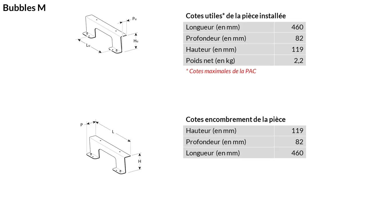 Deux paires de pieds BUBBLES sont nécessaires au modèle Base BUBBLES lorsque la pompe à chaleur ou la climatisation est positionnée au sol. Ils permettent de surélever le cache pour laisser passer les gaines. Vendus par paire, les pieds sont disponibles en 4 couleurs ou personnalisables sur commande avec une plus-value de 25 %.