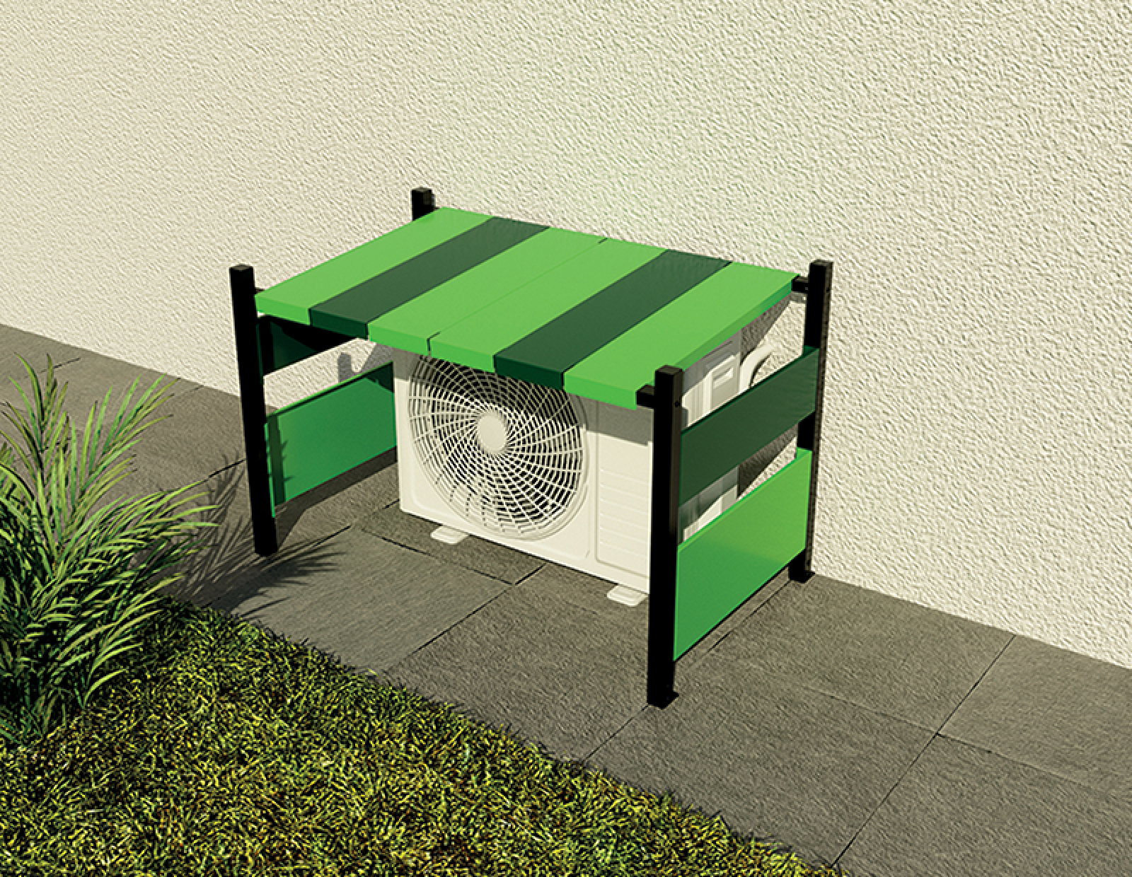 Les tuiles Outsteel COLORS (vendues par paire) existent en 4 couleurs standard permettant de composer à sa convenance. Elles sont personnalisables sur commande dans la nuance RAL de son choix (avec une plus-value de 25 %) pour une intégration parfaite de la pompe à chaleur ou de la climatisation dans son espace environnant.